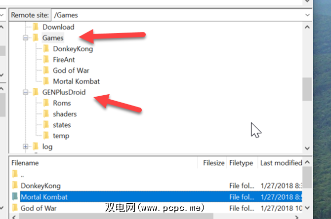 我在手机上使用FTP应用程序以便传输文件直接将其无线连接到我的Android设备,并将我从小就拥有的游戏的ROM放入手机上的“游戏"目录中(见上文)。
