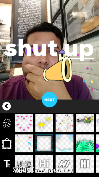 您可以创建长约5秒钟的长GIF。在任何创作中,您都可以添加多个可以翻转或调整大小的贴纸,以及添加一些滤镜的贴纸。您还可以将文本添加到GIF,创建自己的自定义类似模因的GIF。
