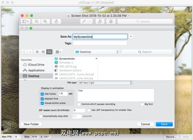 您可以直接下载的另一个屏幕录像和GIF创建工具是LICEcap。这个程序就像Giphy Capture一样容易使用。打开它,然后调整每秒的帧数和录制窗口的尺寸。然后点击 Record 按钮。