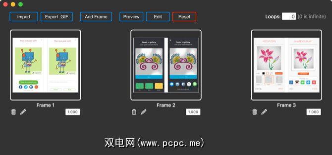 在编辑帧之后,您可以为每个帧设置时间延迟。主屏幕上的循环数。完成创建GIF后,请点击顶部的预览按钮,然后将其导出到计算机(如果您满意)。