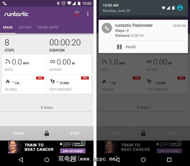 Runtastic计步器放在口袋里时效果最佳走路时手机会混淆传感器。另一方面,该应用向我发送了一条错误消息,提示它无法在屏幕关闭的情况下运行。这确实阻碍了它的用处。 Runtastic计步器显然是打算在有限的时间内使用,而不是作为全天Fitbit的替代品。