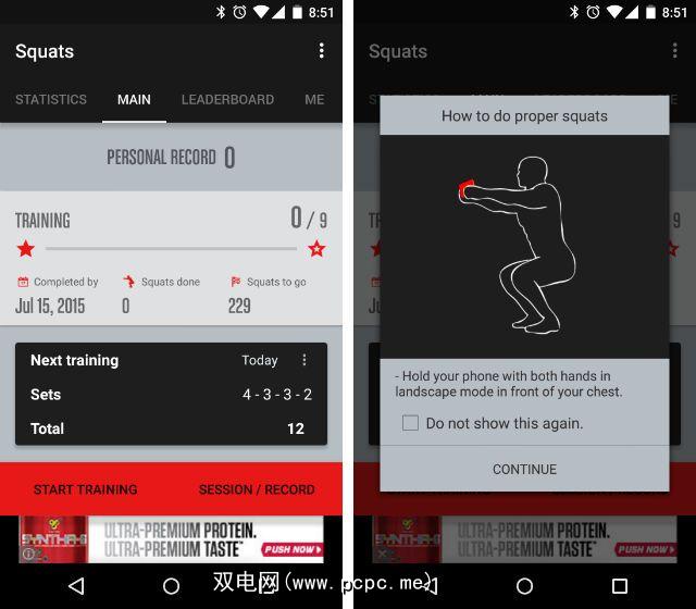 每个应用程序还提供了一种统计您的代表次数的方法。使用俯卧撑,您可以将设备放在地面上并用鼻子触摸屏幕。蹲下时,您可以将其放在面前,每次站立时,计数器都会增加。仰卧起坐也是一样。对于引体向上,您可以将手机放在口袋里。