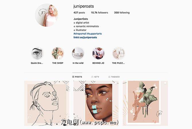 签出@juniperoats可以看到这个Instagram主题的实际运用(并跟随他们学习一些惊人的艺术作品)。