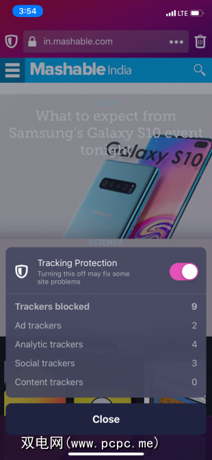 您打开应用程序,浏览网络,打开页面(但不在新选项卡中),基本上就是这样。该应用默认情况下会禁用广告跟踪,分析跟踪,社交跟踪和内容跟踪。您可以通过点击盾牌图标查看Firefox阻止了多少个跟踪器。点击已删除邮件按钮以清除浏览历史记录。