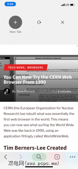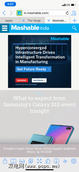 但是,不仅勇敢的浏览速度如此之快。该应用程序本身可以快速导航。它在底部工具栏中具有专用的新标签按钮,并且是该列表中为数不多的几个应用之一,顶部具有可滚动的标签栏。