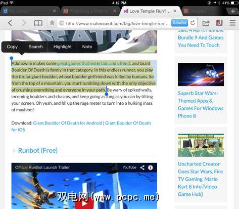 如果您需要或想要突出显示和查看网页,则iPad的Diigo Browser(免费)是不错的选择。