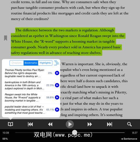 最后,我们最近查看过的Voice Dreams($ 9.99)是iOS语音阅读器应用,允许用户添加和保存突出显示和注释,应用可以将其读回给您。该应用程序的书签工具的独特之处在于,用户可以在语音阅读时点击并在文档中添加段落。