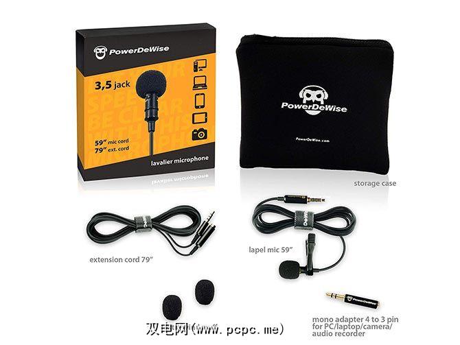 PowerDeWise OmniDirectional Lavalier麦克风位于价格低于10美元的入门级品牌中间。它使用4针TRRS 3.5毫米插孔连接到59英寸(1.5米)巨大的电源线。最重要的是,您还获得了一条额外的79英寸(2米)延长线。