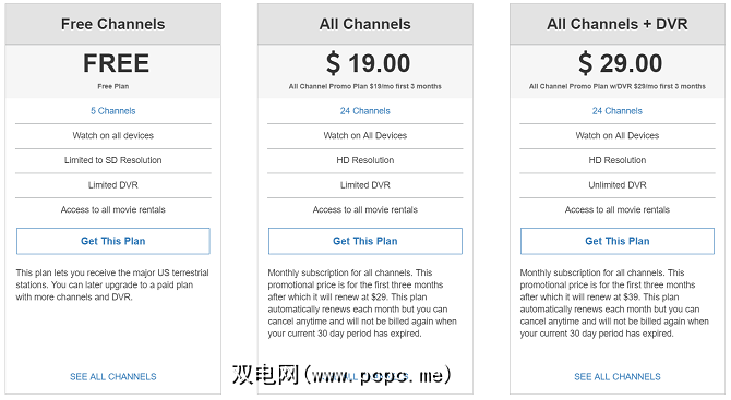 只有一种计划可用;每月只需支付$ 40美元的固定费用,即可访问60多个IPTV频道,包括ABC,FOX,CNN,NBA TV,FOX Sports,Comet,E!和TNT。