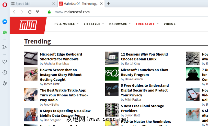 Opera被誉为革命性的浏览器,具有其他地方看不到的功能,Opera具有不寻常的侧边栏用户界面。尽管它的许多革命性功能已被其他浏览器借鉴(例如快速拨号,弹出窗口阻止,私人浏览),但它仍然是Firefox的可靠替代品。