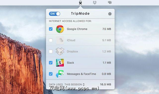 移动数据是昂贵。因此,当您需要将手机连接到Mac或通过热点使用移动数据时,您不想将其浪费在后台应用程序等上。您可以单独停止每个应用程序,也可以仅使用TripMode。它会向您显示所有正在使用Internet的应用程序的列表,并允许您通过切换将其打开和关闭。