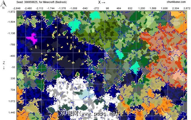在Redditor SnoverMC的发现范围内,您的起点附近便有数量惊人的生物群落。查看上面的地图,您会发现它确实包含了所有内容。几乎所有可用的生物群系的结合,使它成为生存模式冒险者的绝佳起点,可以收集每个区块和资源类型以到达游戏的后期。