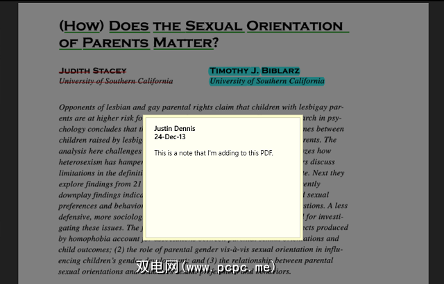 笔记也很容易留下。屏幕中间会出现一个小记事本,上面显示您的姓名和日期。然后,可以通过黄色的聊天气泡访问此注释,该气泡可以移动到PDF上的任何位置。