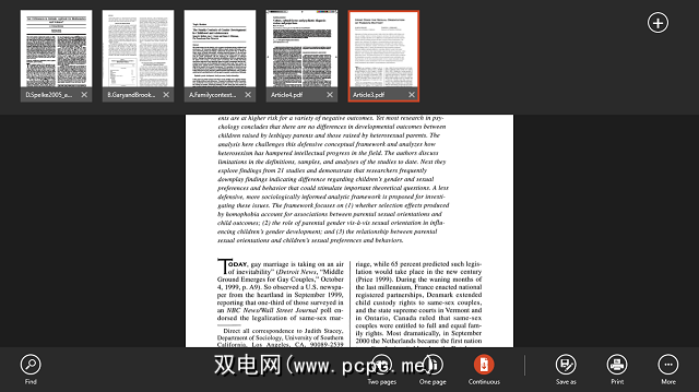 默认情况下,在Windows 8 / 8.1中打开PDF会打开恰当命名的Reader应用程序。这是一个非常基本的PDF阅读器,但实际上我已经喜欢它了。非常适合在角落素描笔记。如下所示,页面编号将在您滚动到新页面时显示在左上角,但在您停止滚动后消失。