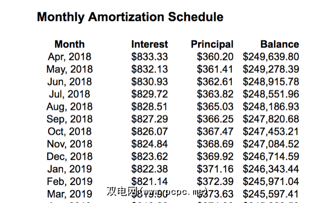 我们将在本文结尾详细讨论分期偿还时间表,但是如果您要立即开始,建议您使用MortgageCalculator.org来了解一下您将支付多少利息。