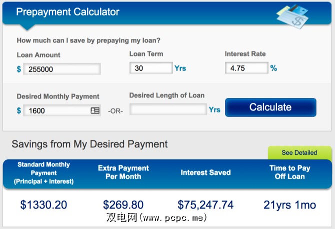 想要了解一些额外的付款将如何帮助您偿还抵押贷款抵押?您需要预付抵押贷款计算器。