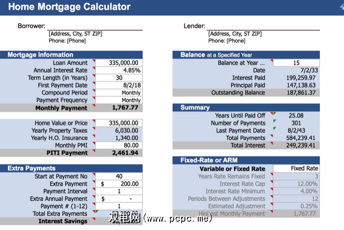 如果您想要绝对最佳的抵押贷款计算器,您将需要Vertex的这张Excel电子表格42.您需要大量信息以充分利用它,包括所有抵押贷款率信息,税阶,计划的额外付款,财产税,住房保险以及更多其他信息。