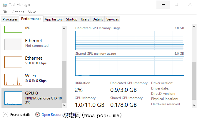 请记住,您将无法修改风扇速度等功能通过任务管理器。但是,您可以查看GPU的利用率百分比,内存统计信息,驱动程序版本等。