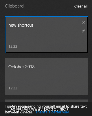 Windows 10中剪贴板的新快捷方式使您可以跨设备复制和粘贴,而无需任何其他应用。只需按 Win + V ,您将看到新的剪贴板窗口。