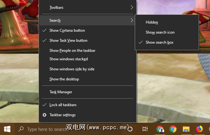 现在,您可以做到这一点。 Windows 10为Cortana和任务栏上的搜索提供了单独的图标。要更改它们的显示方式,请右键单击任务栏上的空白区域,然后选择显示Cortana按钮进行切换。在搜索下,您可以选择隐藏,显示搜索图标或显示搜索框。