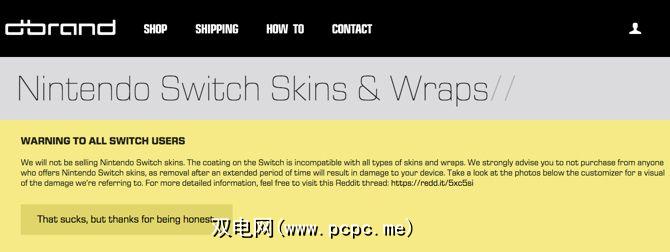这可以确保在将开关拖入其对接端口时可以缓冲前面。但是,某些用户的背部可能有划痕的问题。而且,不幸的是,dbrand的皮肤在这里无济于事,因为使用的粘合剂可能会导致Nintendo Switch开始脱落!