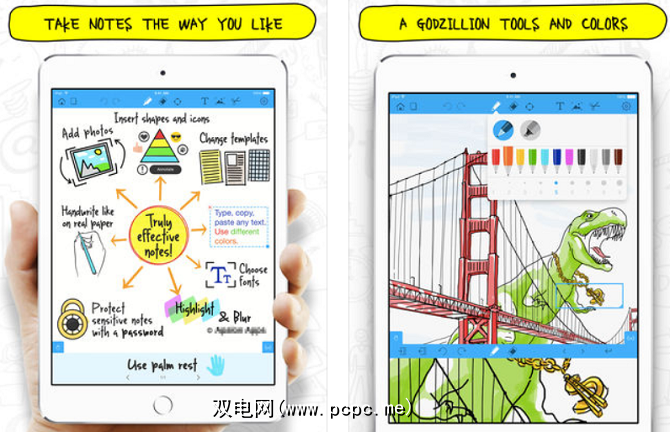 Notepad + Pro是此列表中最昂贵的应用,价格为20美元。但这是想要在iPad或iPad Pro上拥有传统笔和纸感觉的任何人的最佳选择。有几种墨水笔,荧光笔和颜色工具,所有这些工具的目的都是复制纸本方法来做笔记。