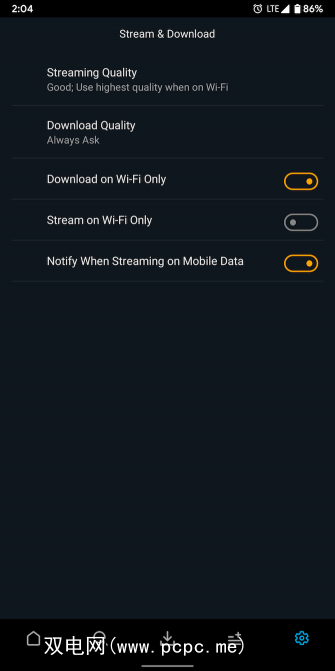 下载整个库的最简单方法是点击顶部的 Download 按钮所有歌曲列表中的列表,您可以在您的音乐库标签上找到该列表。在设置中,您会找到一个离线模式,该模式隐藏了您尚未保存供离线使用的所有音乐。如果存储空间不足,这里还可以选择更改下载质量。