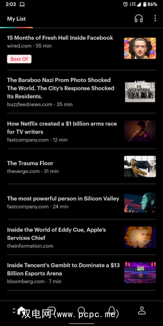 除此之外,Pocket还提供了许多工具,可提供理想的阅读体验,例如暗模式,文本-语音集成,音量按钮滚动和个性化推荐。