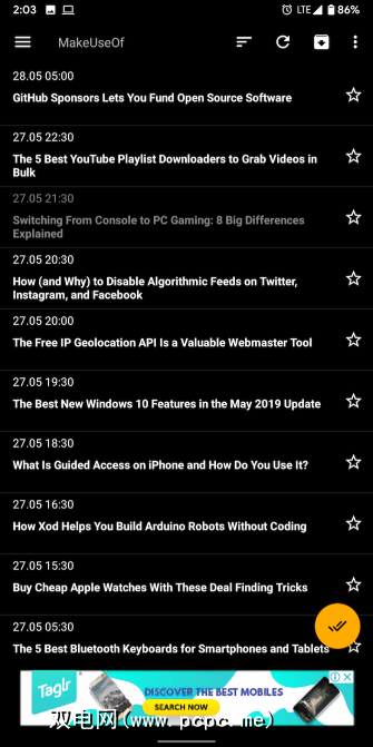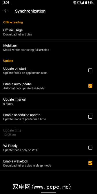 RSS Reader的与众不同之处在于,它可以同步新文章以供脱机使用。您需要从设置中激活此选项;它适用于Wi-Fi和移动数据。