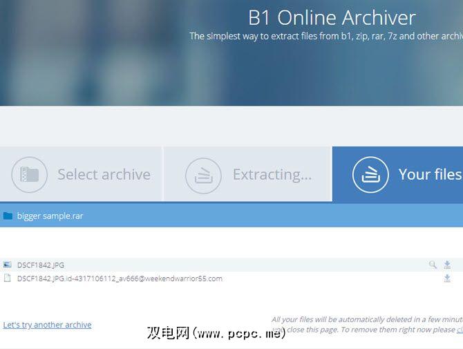 基于此,B1 Online Archiver和Archive Extractor是前两个竞争者。而且由于它的功能集稍好一点……