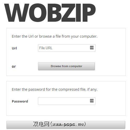 WOBZIP是另一个在线RAR提取器。除否定之外,它没有其他任何特别的方法:在我们的测试中不起作用。因此,我们不建议您使用它。