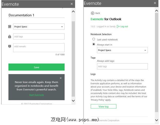 将电子邮件转换为便笺,然后使用Evernote插件将其直接弹出到项目笔记本中。该工具可能是一个简单的工具,但是如果将Evernote用于项目,则该工具将无价之宝。在收件箱或邮件窗口中,单击功能区中的保存到Evernote 。