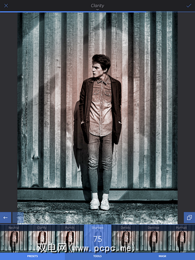 不要被它的三个滤镜选项所迷惑(主菜单中的调整,清晰度和目标)。每个选项都有大量效果,您可以通过轻扫以更改滤镜强度来手动调整。某些选项还使滤镜仅应用于照片的选定部分。