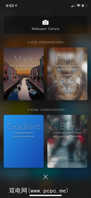 遮罩工具可让您添加柔和的滤镜移至图像顶部,以使其准备好进入锁定屏幕(以使时间始终清晰可见)。 框架可让您选择图像并将其放在墙纸底部三分之二的框架中。