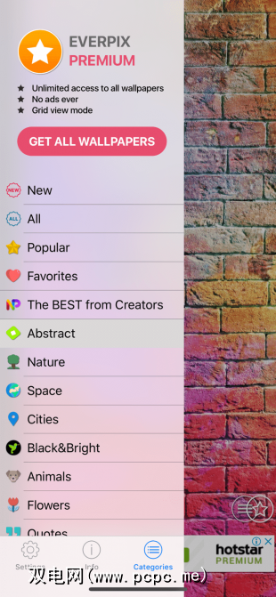 您可以从右边缘向内轻扫以对壁纸进行排序按自然,模式,摘要等类别。
