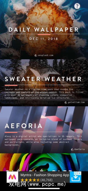 我使用了许多墙纸应用程序,并且发现Clarity的Featured系列是最好的。突出显示的照片从客观上讲是极佳的,并且不遵循特定的样式或调色板。