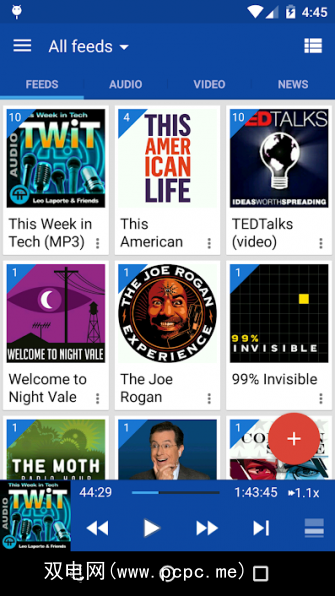 该应用将播客和直播广播整合到一个界面中。您还可以使用它来管理您的有声读物,YouTube频道,SoundCloud订阅和RSS feed。