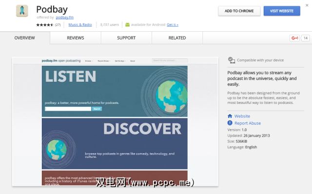 Podbay是另一个流行的Android应用程序,它已跃入Chrome网上应用店。