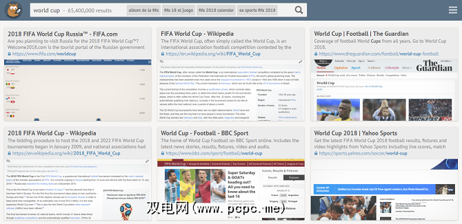 该服务值得一提,这要归功于它显示结果的新颖独特方式。 Peekier使用显示器的整个宽度以卡片格式显示结果。相对于传统的结果显示方式而言,它进行了令人耳目一新的更改,该方法通常会浪费大量空间。