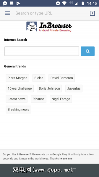 除了对Tor的支持外,InBrowser还提供了强大的隐私功能。最值得注意的是,它不会在会话之间保存您的任何数据。轻按“主页",“退出"或“关闭"按钮后,该应用程序将清除您的历史记录和浏览信息。