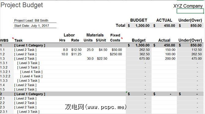 如果您的某些职责包括项目成本管理,那么来自Vertex42的该项目预算模板就很棒。它使您可以按任务在各个级别管理项目成本,并且可以与工作分解结构(WBS)一起使用。