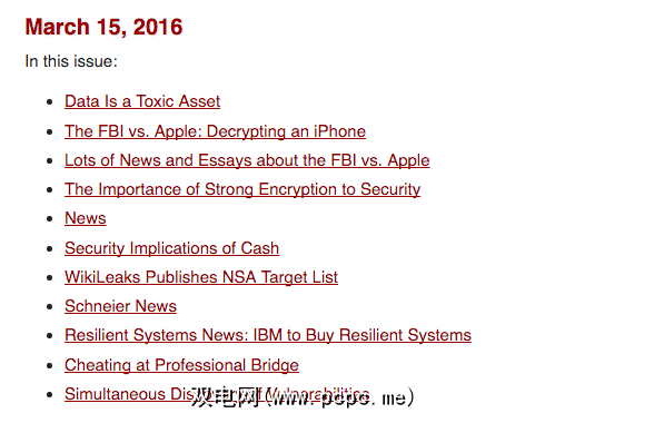 为什么会喜欢它:您是什么样的开发人员,安全性始终是一个必须关注的问题。并非您需要成为安全专家,但这绝对有助于掌握该技术领域的最新动态。每月的摘要为您带来国际知名的Bruce Schneier的精华。