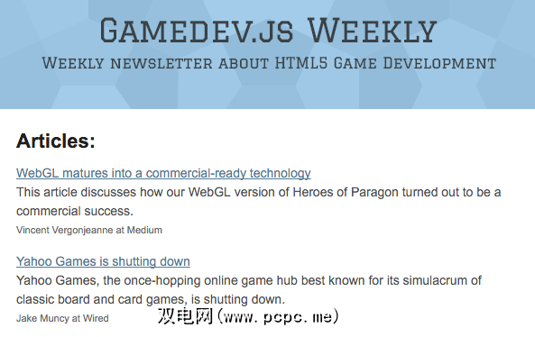 为什么会喜欢它: HTML5和JavaScript用于游戏开发而不是Web开发,那么此新闻简讯非常适合您。它涵盖了有关HTML5 gamedev场景的所有内容:新闻,社论,教程,事件,竞赛以及值得强调的有用工具和资源。
