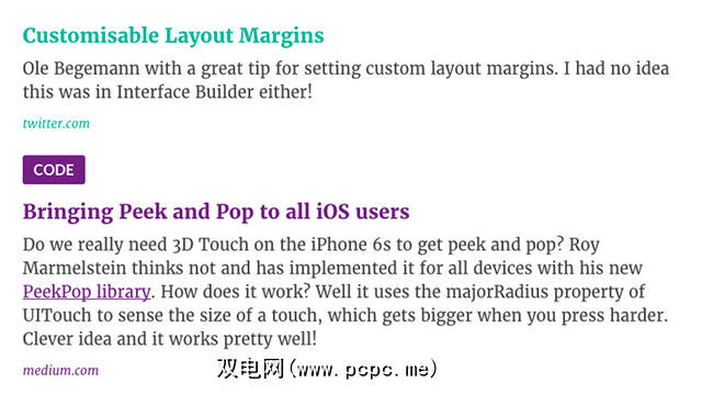为什么会喜欢它: iOS开发已经过去几年中最受欢迎的市场之一。该新闻简讯不仅可以确保您掌握最新信息,而且由于其分类细目(新闻,工具,代码提示,设计提示,营销提示和职位列表)也易于阅读。