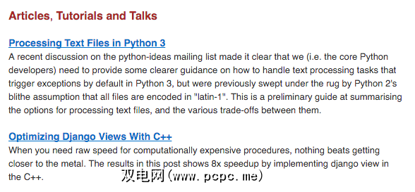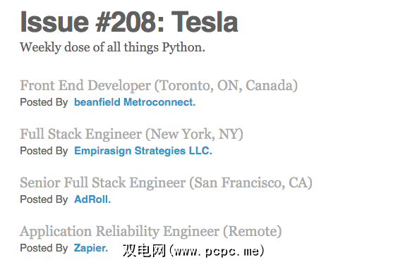 为什么会喜欢它:。本新闻通讯的座右铭是“您每周使用Python做的所有事情",但不仅如此。新闻报道是给定的,但是它还包括来自Web的重要讨论,有趣的开源项目,有用的文章和教程,以及每期的一些职位发布。