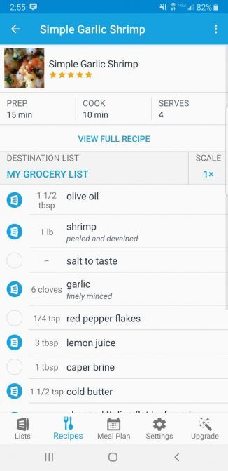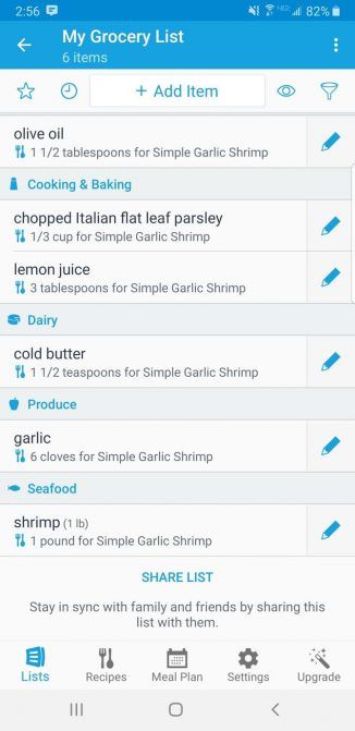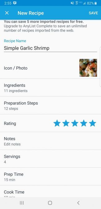 尽管AnyList更侧重于烹饪的杂货店购物,但在整理食谱时仍然很方便。直接从您的移动浏览器导入在线食谱。当配方出现在AnyList中时,该应用程序将列出所有必需的成分及其数量。然后,您可以选择要添加到购物清单中的商品。