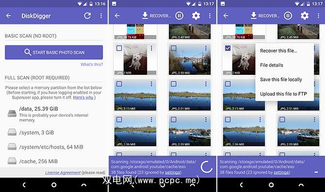 DiskDigger扫描您的内部存储删除的图像,视频或(如果您升级到Pro版本的)其他多种类型的文件。