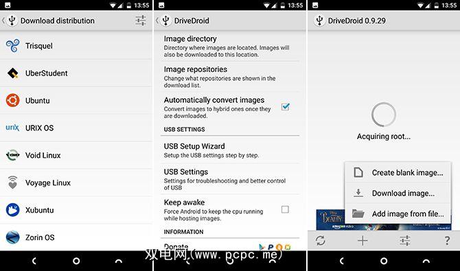 DriveDroid提供了40多个发行版可供下载,包括最受欢迎的软件,例如Ubuntu。您还可以创建空白图像,将手机变成USB闪存盘。这是一个很好的工具,可以随时用于测试Linux发行版或作为紧急启动驱动器。