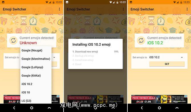 Emoji切换器为您提供10种替代设置,包括几种Android和iOS版本以及Twitter的版本。安装它们就像从列表中选择并重新启动一样简单,并且您可以快速回滚到原始字符。