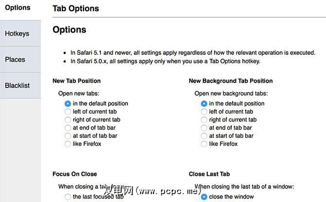 生病的是对浏览器选项卡的控制不够?标签选项是您的扩展名。它允许您启用选项卡的其他选项,甚至分配热键以执行某些与选项卡相关的操作。值得注意的是可以指定关闭另一个选项卡时将焦点放在哪个选项卡上。
